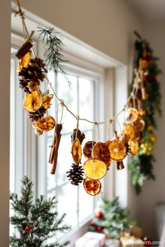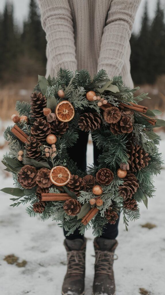 Природні матеріали — шишки, жолуді, сушені цитрусові та палички кориці — є чудовою основою для створення екологічних та ароматних новорічних прикрас. Такі іграшки не лише прикрашають ялинку, але й наповнюють простір чудовими зимовими запахами. Перевага цього напрямку в тому, що всі матеріали є абсолютно безкоштовними та легкодоступними, їх можна зібрати під час осінніх та зимових прогулянок.